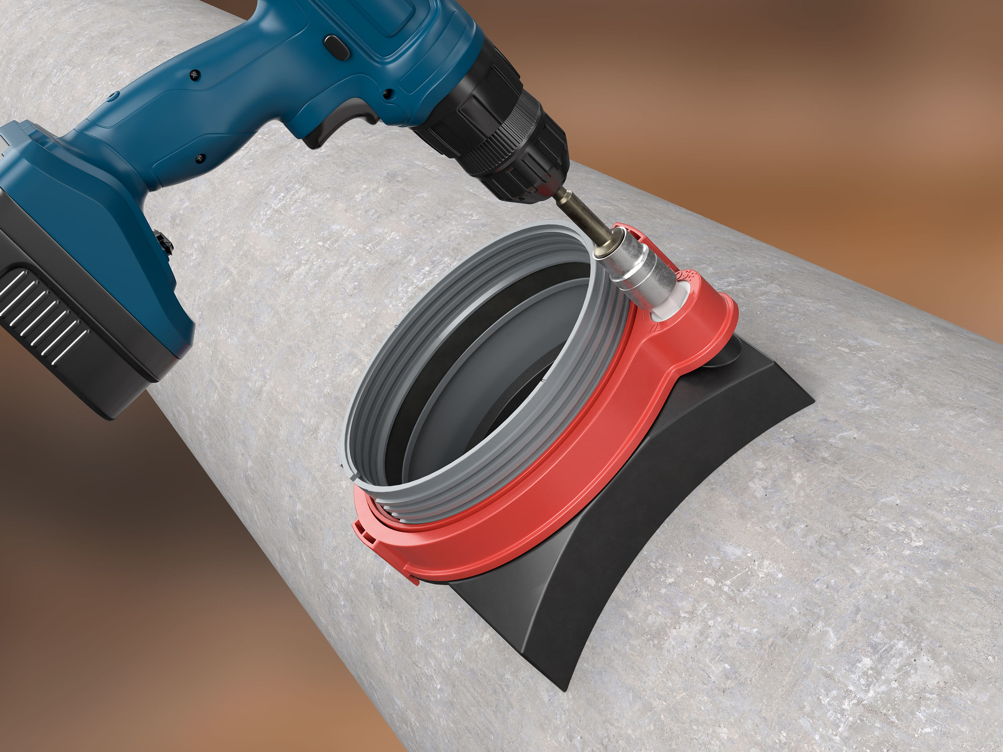 The VPS Turbo DN/OD 160 is suitable for sewer pipes with DN/OD 300 to 2400 mm; a core hole of 187 to 189 mm is sufficient for installation. This means that the connection can be used effortlessly with a wide variety of pipe materials – from thick-walled concrete to thin-walled plastic.